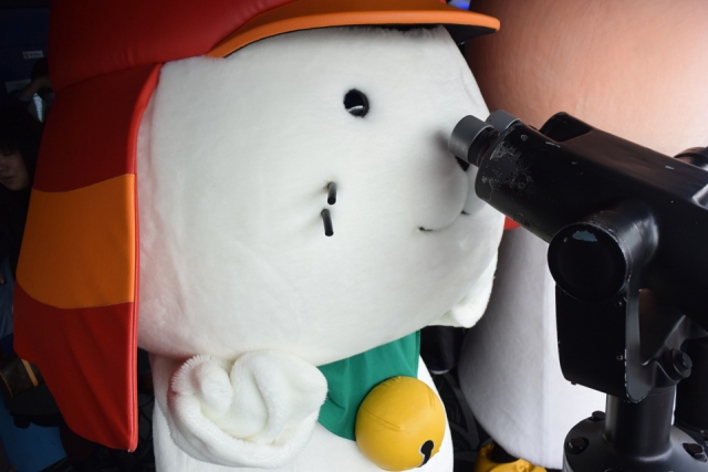 展望台では望遠鏡や背伸びを駆使してなんとか彦根城が見えないか試行錯誤するひこにゃんの姿がありました。