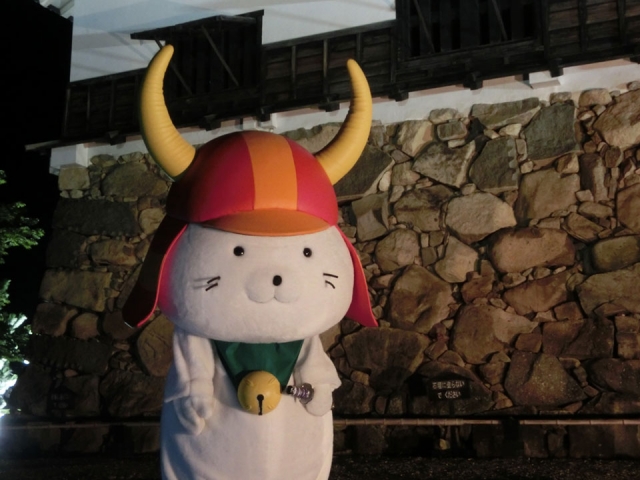 夜のひこにゃんはやはり下からのライティングが面白いですね。