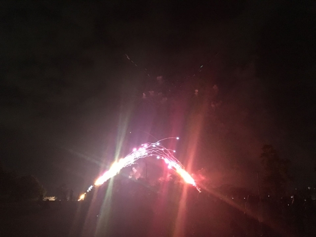 どうしても花火が見たいらしく控室に戻ってくれないので、一緒に花火を見ることにしました。