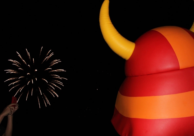 様々なイベントがありますが、花火とひこにゃんの組み合わせは初めて見ました。