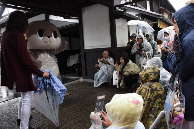 他のキャラさん達は色々な工夫で雨を凌ぎつつ必死のPRです。