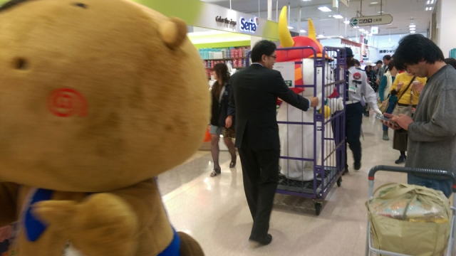 混雑する会場内をビバッチェ君の先導の元、専用の籠に入れれら出荷されております。