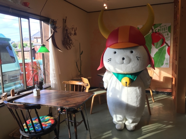 店内からコーヒーのいい匂いがしており、お世話係ともども撮影終わりにケーキとコーヒーをいただいて帰ろうかなと思っておりましたが、お城の登場時間が来てしまいましたので今回はお預けとなりました。。。また、機会があれば今度はお客さんとしていってみたいですねひこにゃん!!