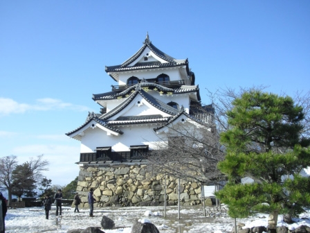 この日は、年末から降った雪の影響で彦根城も、薄っすらと雪化粧をしています。