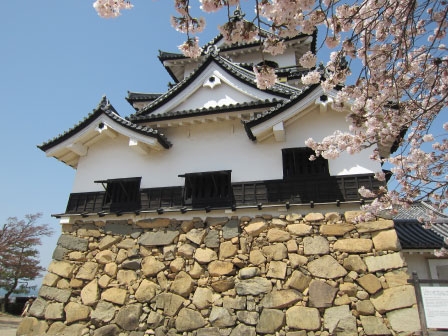 彦根城の桜も、「ひこにゃん」のお誕生日をお祝いするかのように、ちょうど満開の見ごろの時期となっております。