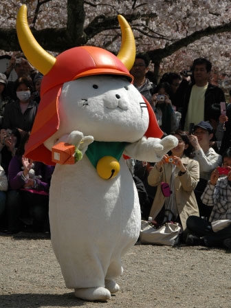 ひこにゃん、満開の桜がよく似合ってますね。当日彦根に行けなかったのが残念です。