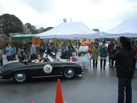 ホームページのニュースでもお伝えさせていただいていましたが、今年も彦根にクラシックカーラリー「ラ・フェスタ・プリマベラ」がやってきました。4月19日の午前中に彦根市を通過され、今回も「ひこにゃん」がスタンプポイントの京橋口駐車場で皆さんをお迎えしました。