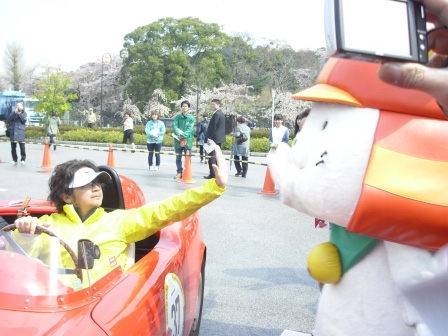 今回のイベントは、東日本大震災の復興支援チャリティーイベントとして開催され、スタンプポイントでは募金活動も行われました。募金いただいた方には、「がんばろう日本」と書かれたオリジナルステッカーがプレゼントされていましたので、ひこにゃんも募金活動の応援をしました。