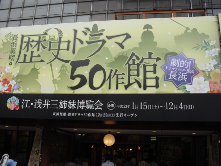 今年の大河ドラマ「江~姫たちの戦国~」では、現在の長浜市など湖北地域一帯を治めていた「浅井長政」と、織田信長の妹「お市の方」との間に生まれた茶々・初・江の三姉妹が主役として活躍しています。