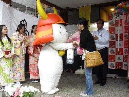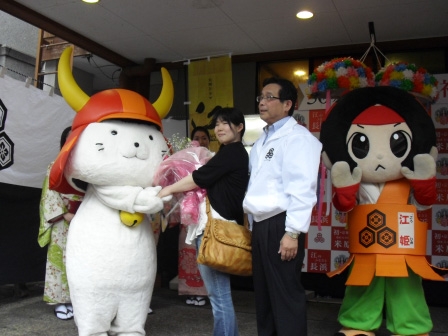 長浜市では、これにあわせて「江・浅井三姉妹博覧会」を三会場で開催されており、6月10日(金)には50万人達成のセレモニーが行われました。