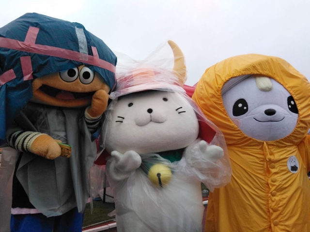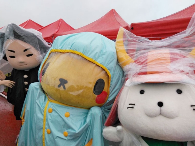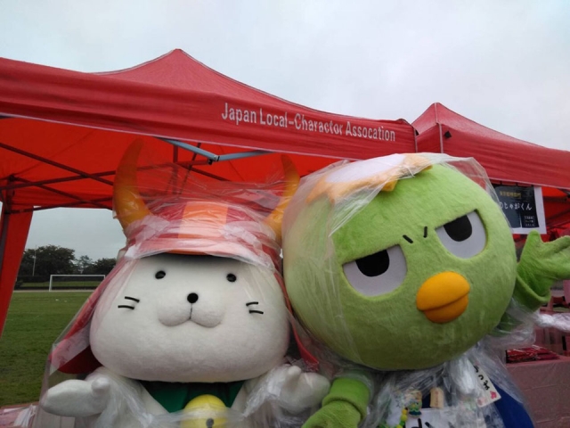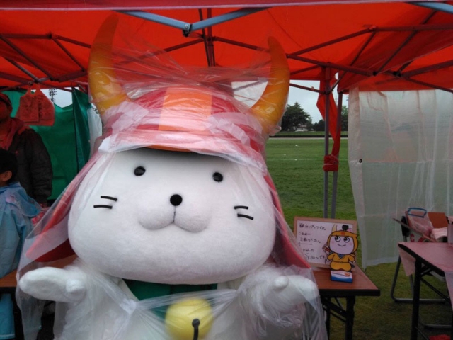 ひこにゃんも即席合羽で、頑張ったんだね。