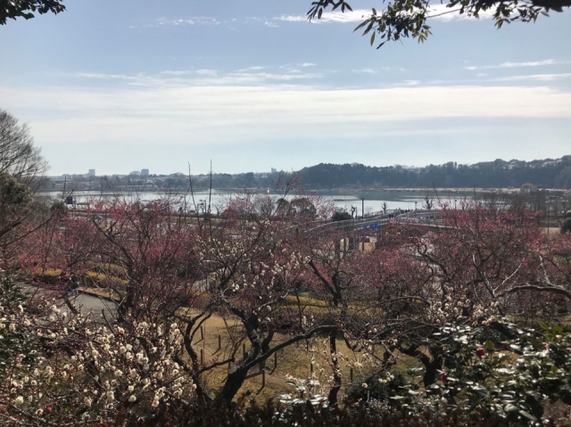 偕楽園では梅まつりが開催されていて、ひこにゃんと梅の花を見るのを楽しみにしていましたが、残念ながらまだ咲き始めでした。